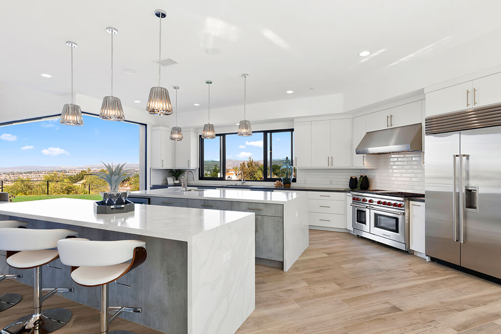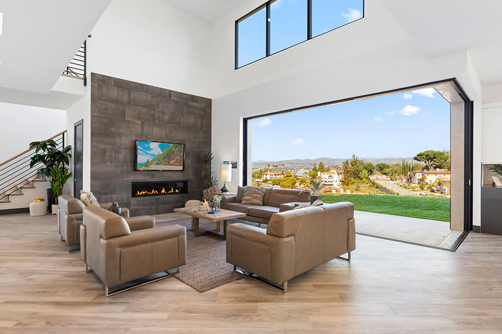 Completed on Christmas eve. 2019 and sold early 2020, this is a 5,500 square foot modern style house with 5 bedrooms, an office, loft, and a large great room with pocket doors with seamless transition into the backyard. doors opening to backyard with panoramic views to the Anaheim Hills.